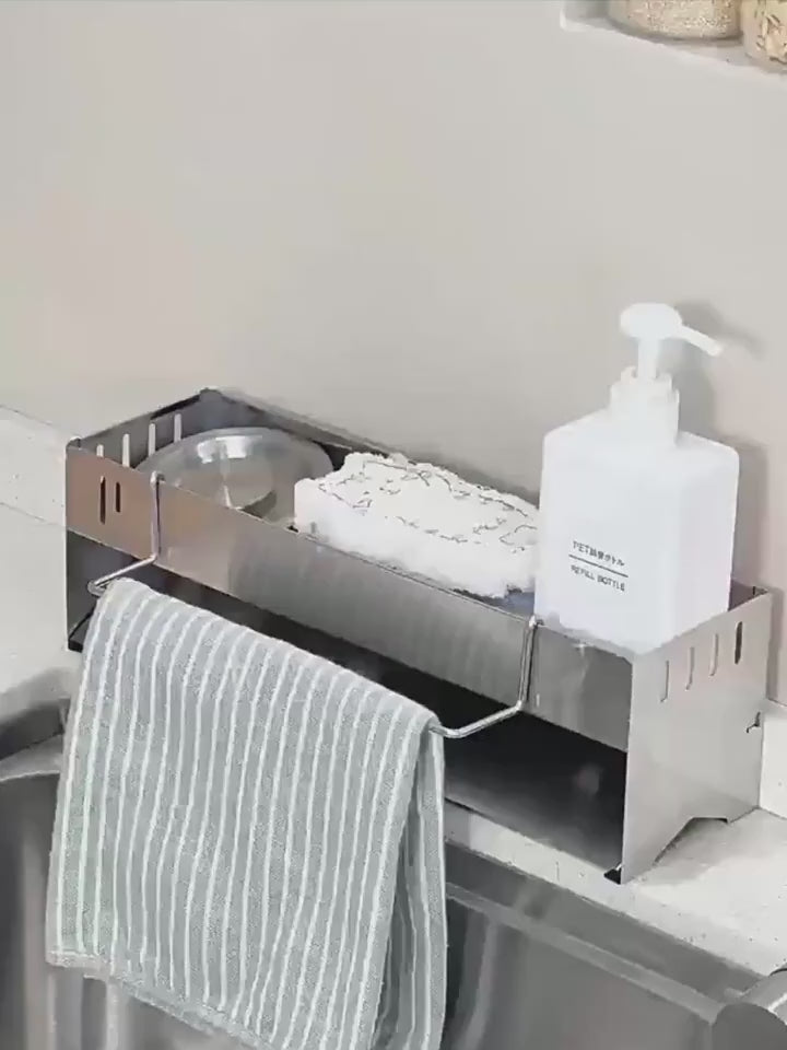 Der Küchenruhe Spülbecken Organizer schafft Platz und sorgt für ein aufgeräumtes Gesamtbild.